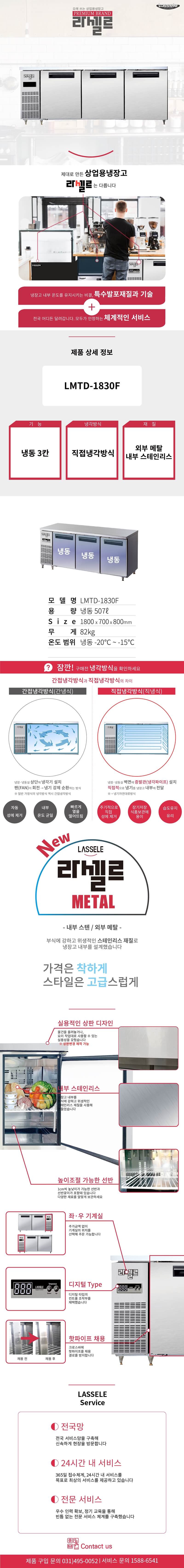 LMTD-1830F 유버스 [라셀르] 직냉식 테이블 냉동고 507L급 내부스텐 제품분류 업소용 용량(총량) 500L이상 기능 3도어 AS기간 1년 최저 렌탈가 월 62,000 (렌탈가) 제휴카드 할인가 월 (렌탈가) 3년 4년 5년 할인 제휴카드 보기 렌탈신청 장바구니