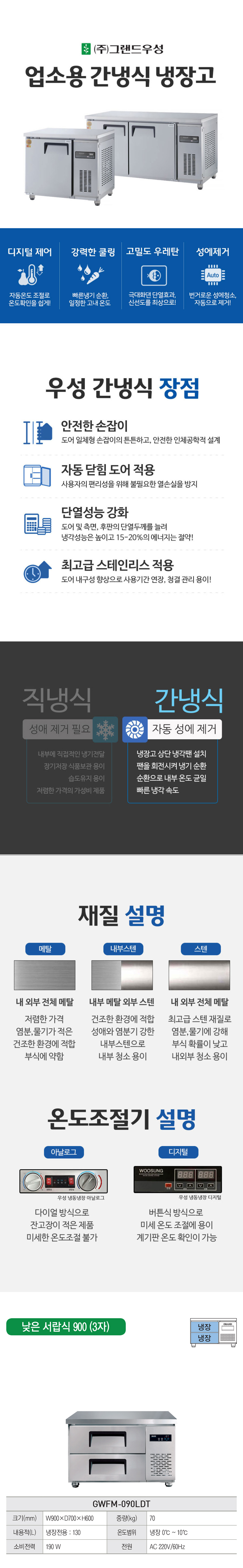 [그랜드우성] 간냉식 낮은 서랍 냉장고 130L 폭700