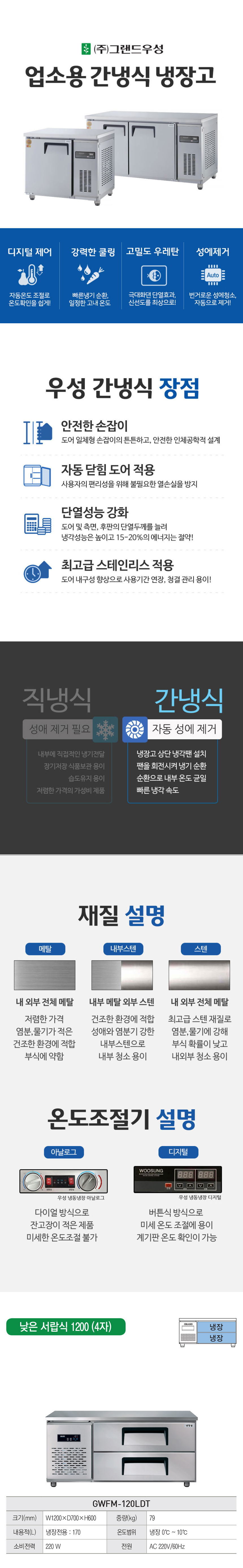 GWFM-120LDT_L7 유버스 [그랜드우성] 간냉식 낮은 서랍 냉장고 170L 폭700 제품분류 업소용 용량(총량) 100L이상 기능 2도어 AS기간 1년 최저 렌탈가 월 90,900 (렌탈가) 제휴카드 할인가 월 (렌탈가) 3년 4년 5년 할인 제휴카드 보기 렌탈신청 장바구니