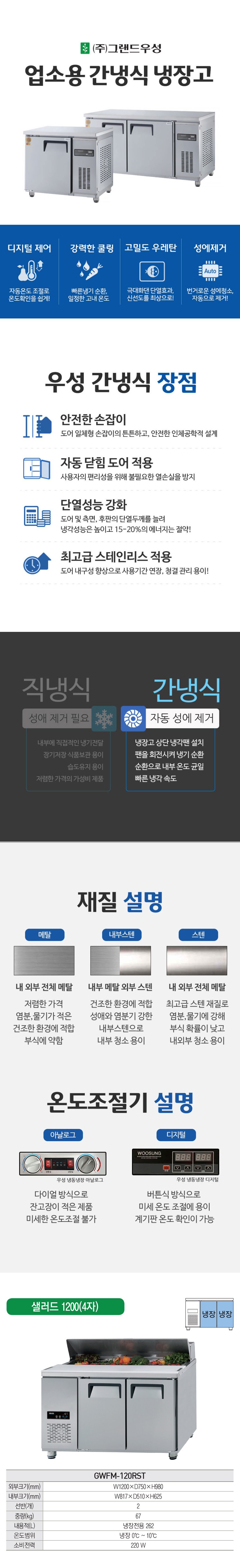 GWFM-120RST 유버스 [그랜드우성] 간냉식 샐러드 냉장고 262L 제품분류 업소용 용량(총량) 200L이상 기능 2도어 AS기간 1년 최저 렌탈가 월 82,000 (렌탈가) 제휴카드 할인가 월 (렌탈가) 3년 4년 5년 할인 제휴카드 보기 렌탈신청 장바구니