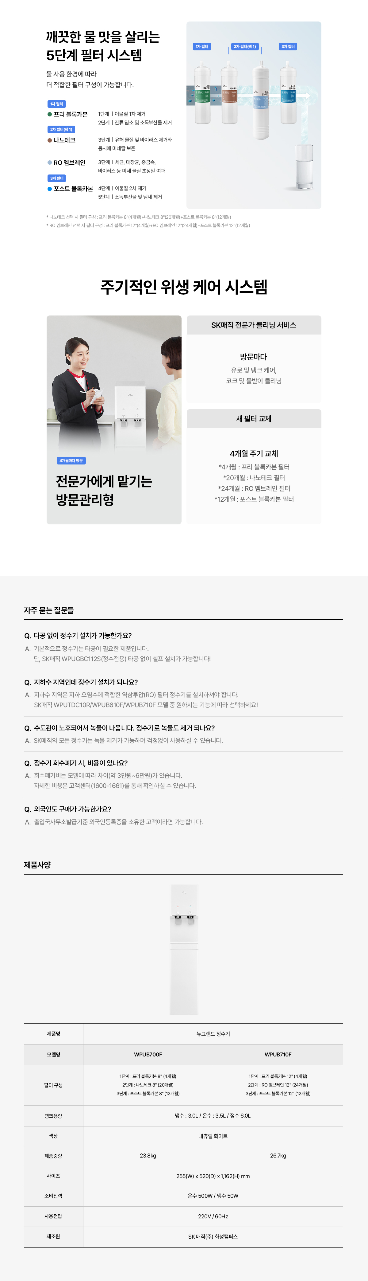 WPU-B700F SK매직 [SK매직] 뉴그랜드 정수기 제품분류 정수기 정수방식 탱크형 기능 냉온전용 AS기간 렌탈기간내 최저 렌탈가 월 27,900 (렌탈가) 제휴카드 할인가 월 (렌탈가) 3년 5년 방문관리/4개월 제품색상 선택 화이트 + 0원 할인 제휴카드 보기 렌탈신청 장바구니