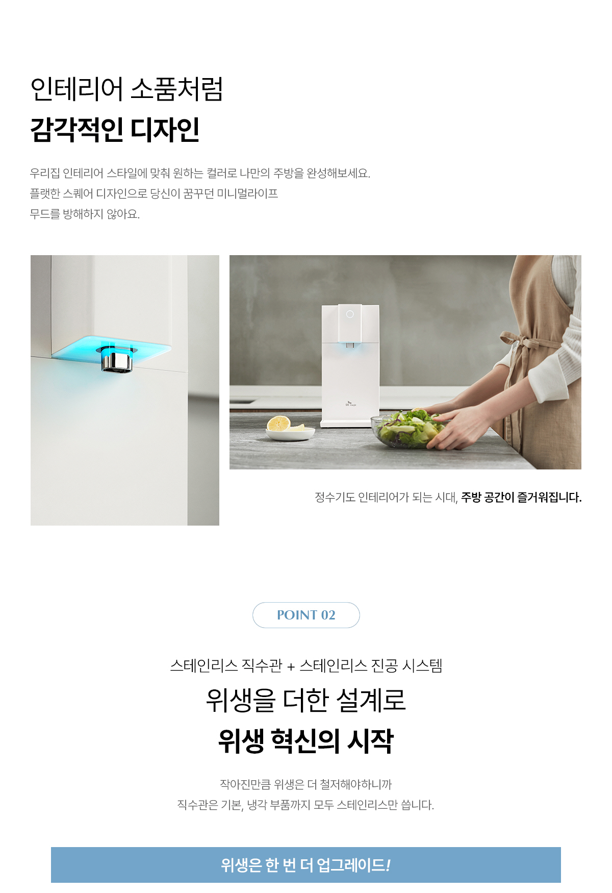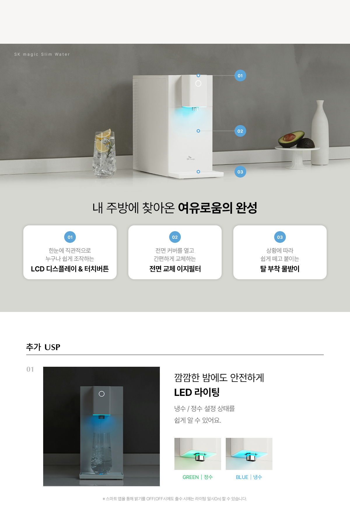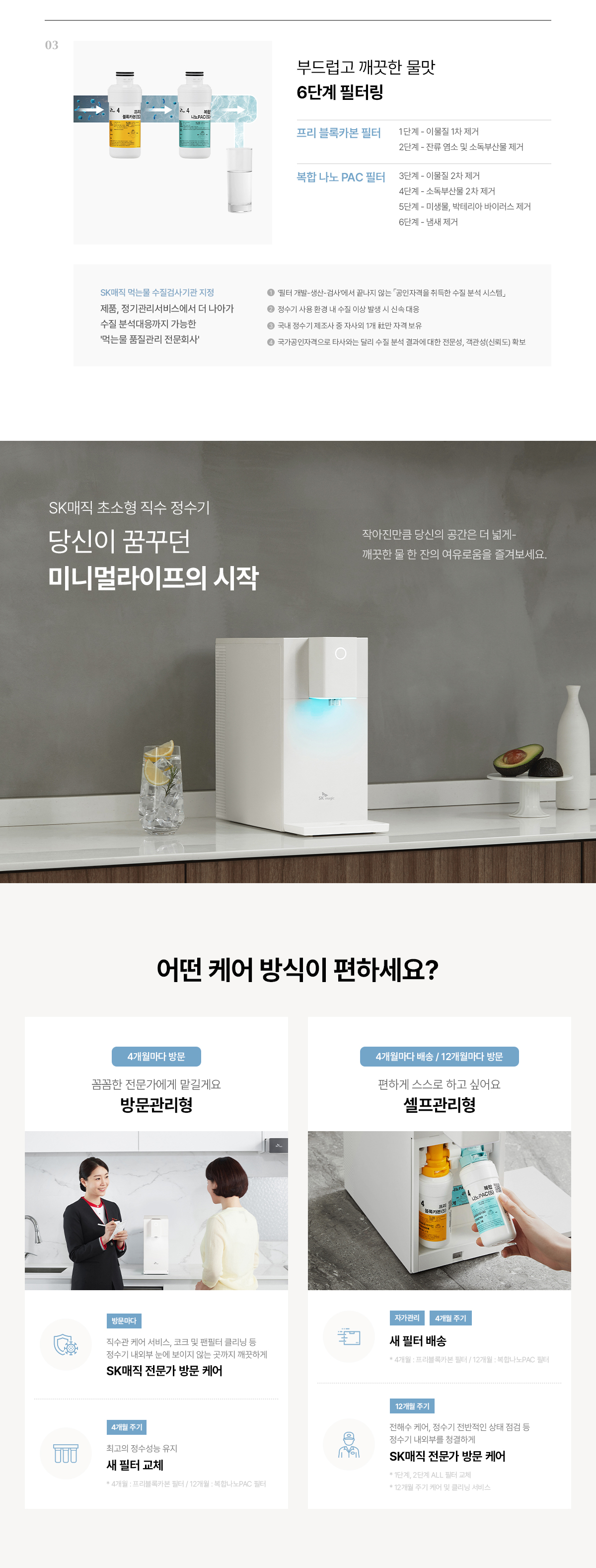 WPU-JCC104S SK매직 [SK매직] 초소형 직수 정수기 제품분류 정수기 정수방식 직수형 기능 냉수전용 AS기간 렌탈기간내 최저 렌탈가 월 25,900 (렌탈가) 제휴카드 할인가 월 (렌탈가) 3년 5년 6년 7년 셀프관리 방문관리/4개월 제품색상 선택 내츄럴화이트 + 0원 할인 제휴카드 보기 렌탈신청 장바구니