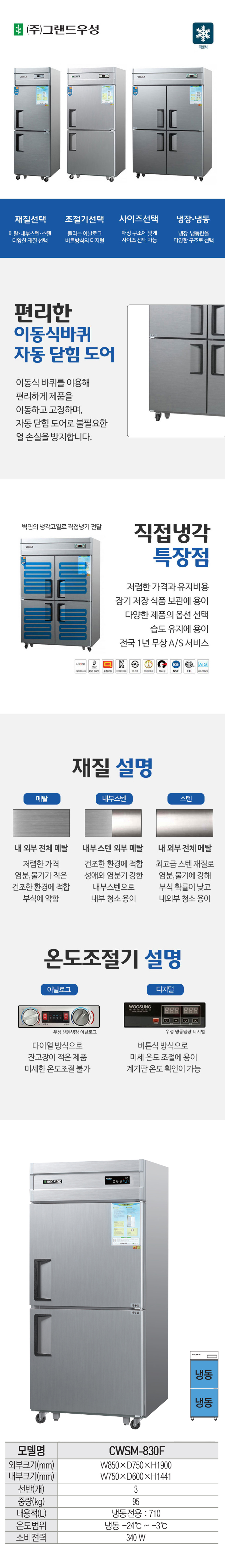 CWSM-830F_올스텐 유버스 [그랜드우성] 직냉식 냉동고 710L 올스텐 제품분류 업소용 용량(총량) 700L이상 기능 2도어 AS기간 1년 최저 렌탈가 월 51,800 (렌탈가) 제휴카드 할인가 월 (렌탈가) 3년 4년 5년 할인 제휴카드 보기 렌탈신청 장바구니