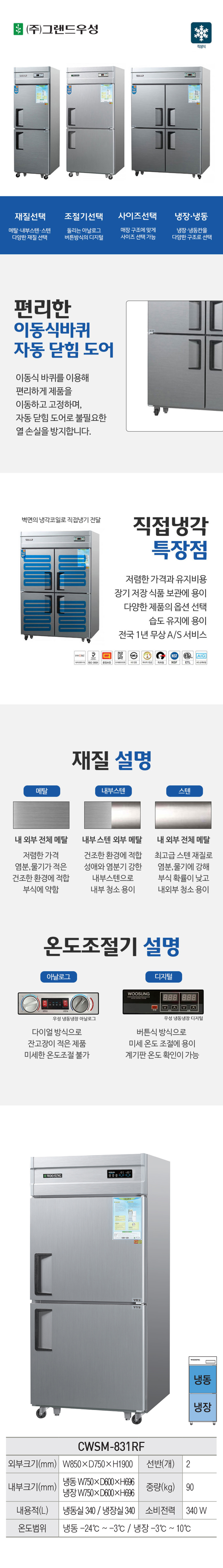 CWSM-831RF_내부스텐 유버스 [그랜드우성] 직냉식 냉장고+냉동고 680L 내부스텐 제품분류 업소용 용량(총량) 600L이상 기능 2도어 AS기간 1년 최저 렌탈가 월 43,300 (렌탈가) 제휴카드 할인가 월 (렌탈가) 3년 4년 5년 할인 제휴카드 보기 렌탈신청 장바구니