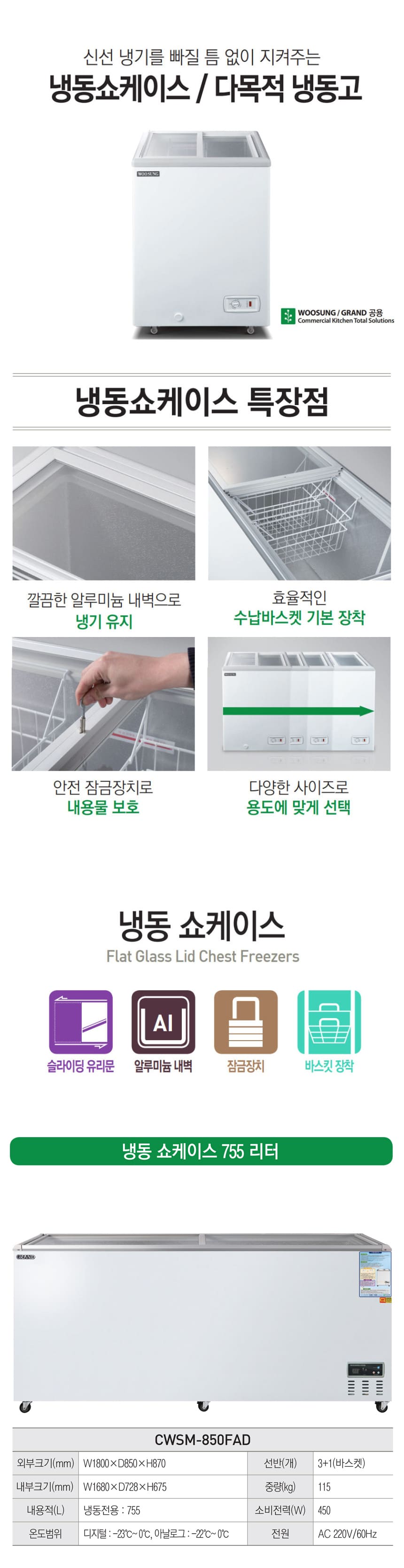 [그랜드우성] 냉동 쇼케이스 755L